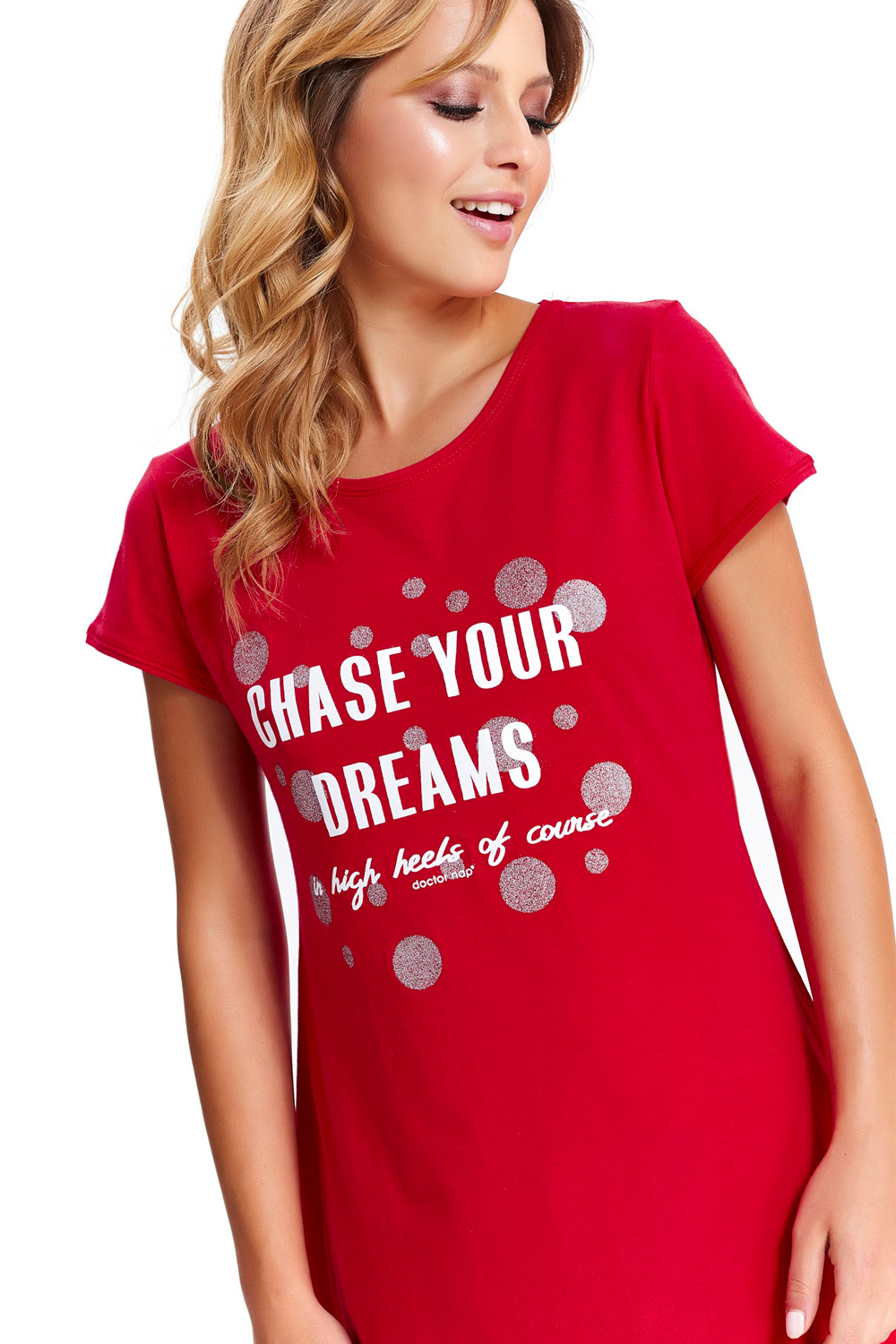 Красная сорочка TM.9512 Red свободного кроя с коротким рукавом, декорирована принтом в виде надписи.