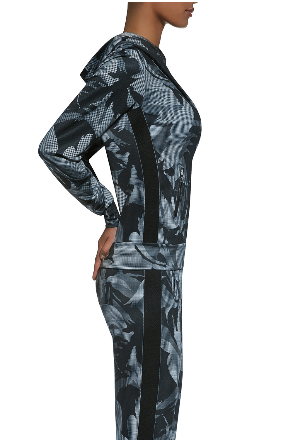 Толстовка с капюшоном для фитнеса свободного кроя цвета милитари Athena top 200 den изготовлены из полностью непрозрачного, эластичного, корректирующего фигуру материала. Благодаря применению особой химической модификации структуры волокон фирмы ARCHROMA, материал имеет улучшенные свойства пропускания воздуха и отвода влаги с тела.