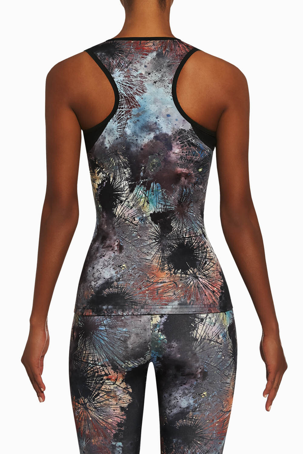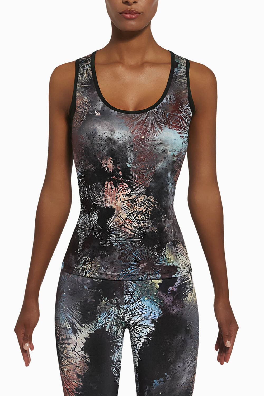 Спортивная майка для фитнеса Fusion top 50 200 den с ярким абстрактным принтом изготовлена из полностью непрозрачного, эластичного, корректирующего фигуру материала. Благодаря применению особой химической модификации структуры волокон фирмы ARCHROMA, материал имеет улучшенные свойства пропускания воздуха и отвода влаги с тела.