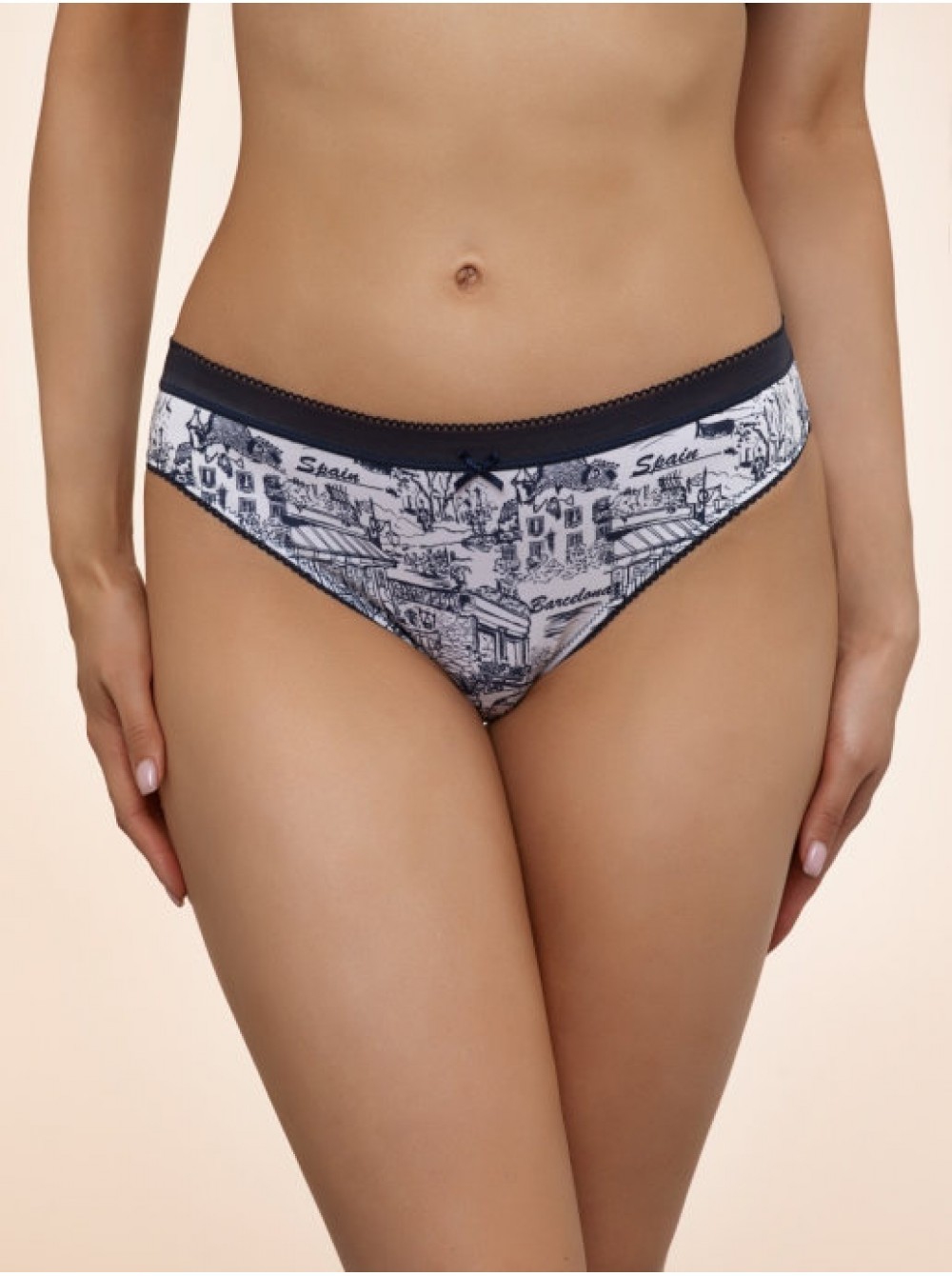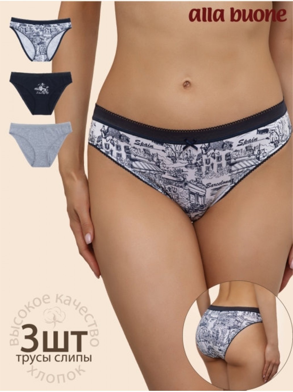 Набор хлопковых женских трусов слип с узкой боковой частью и классической средней линией талии и оригинальным рисунком.