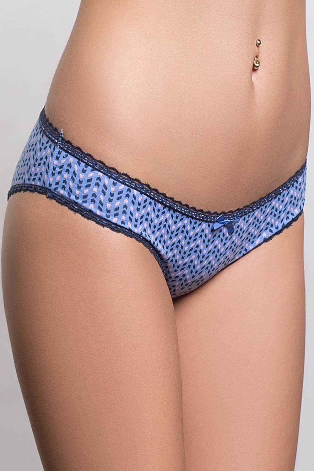 Хлопковые женские трусы-слипы 1422-1520-B синего цвета с принтом. Все срезы декорированы отделкой с ажурным краем.