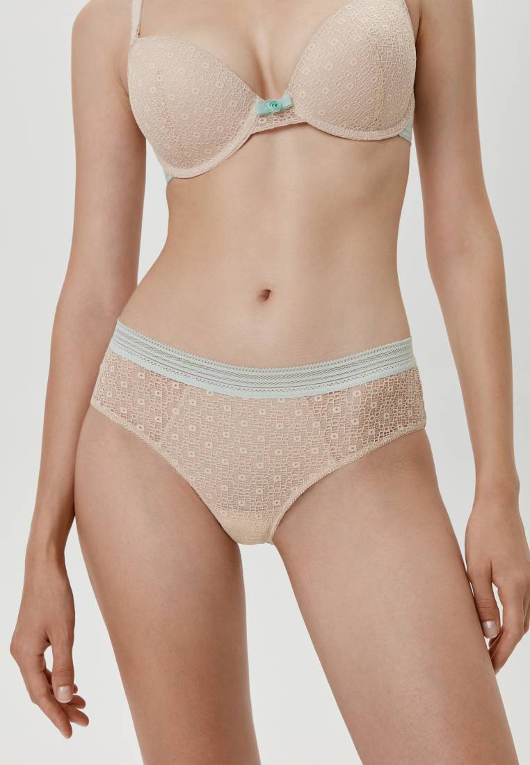 Трусы серии Arabesque созданы на основе самых актуальных тенденций бельевой моды. Легкое кружевное полотно с ажурным рисунком, широкая спортивная тесьма и цветовая гамма в пастельных оттенках пудры и прованса - это белье станет вашим любимым трендом!