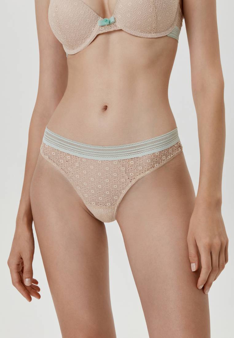Трусы серии Arabesque созданы на основе самых актуальных тенденций бельевой моды. Легкое кружевное полотно с ажурным рисунком, широкая спортивная тесьма и цветовая гамма в пастельных оттенках пудры и прованса - это белье станет вашим любимым трендом!