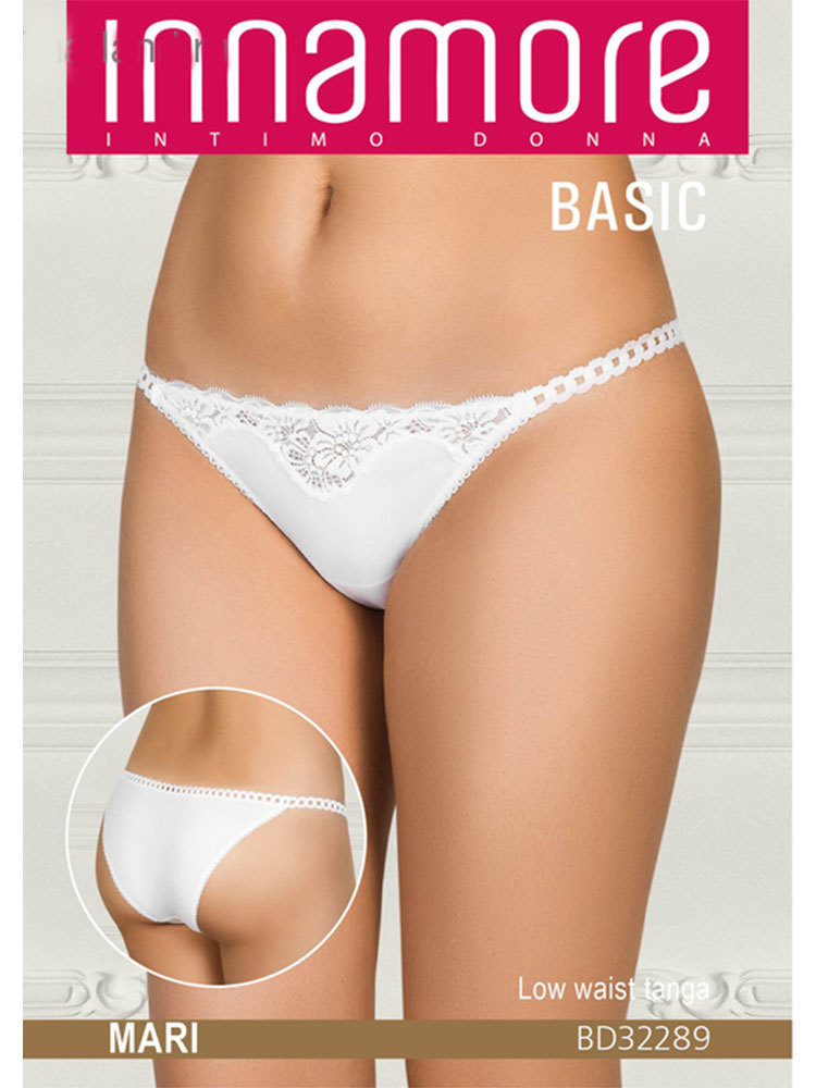 Изящные женские хлопковые трусы танга с кружевной вставкой спереди, заниженной линией талии на тоненькой боковой ажурной резинке.