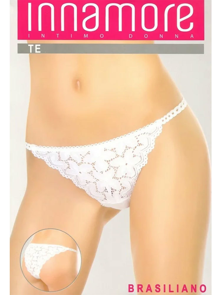 Женские кружевные трусы бразилиана с заниженной линией талии. Эластичное полупрозрачное кружевное полотно с цветочным орнаментом и хлопковая гигиеническая ластовица.