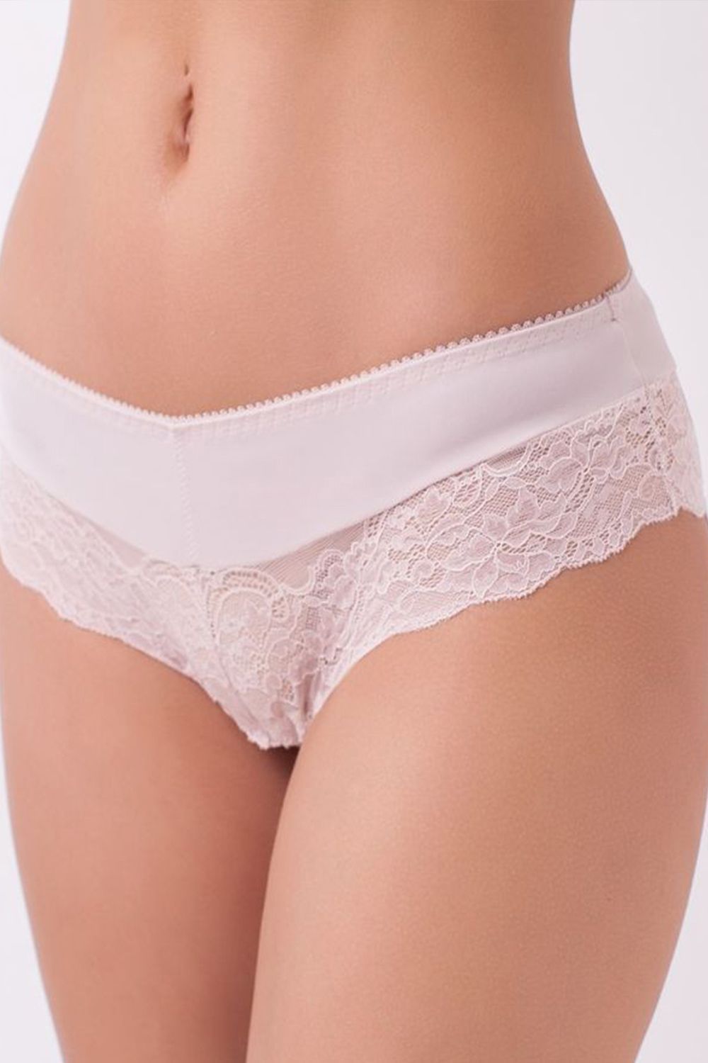 Трусы панти со средней линией талии, украшены кружевом на передней детали изделия и по ножкам на задней детали. Украшение: атласный бантик.
