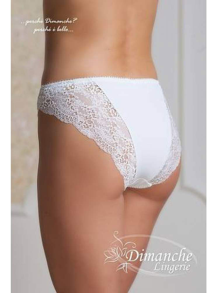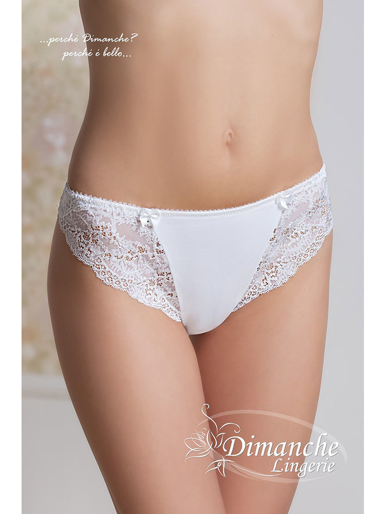Женские трусы слип из элегантного кружевного материала со вставкой спереди из гладкой шелковистой микрофибры, хлопковой гигиенической ластовицей, украшенные по бокам аккуратными бантиками и эффектным кружевным перехлестом.