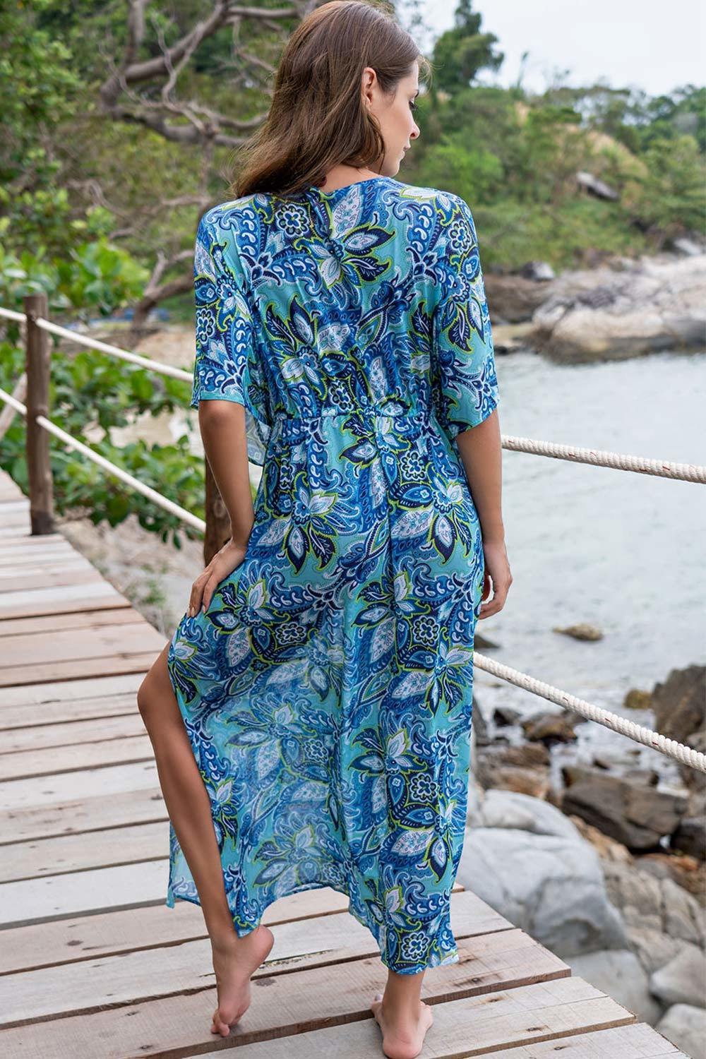 Длинная распашная туника Mia-Amore с рукавами летучая мышь выполнена из трикотажной мелкой принтованной сетки. Туника регулируется по ширине и завязывается на завязку с кисточками.