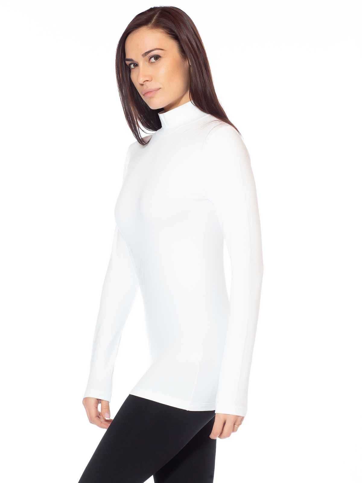 Однотонная хлопковая водолазка с длинным рукавом и воротником-стойкой. Модель выполнена из текстиля нового поколения soft cotton, который отличается повышенной мягкостью и гигроскопичностью.